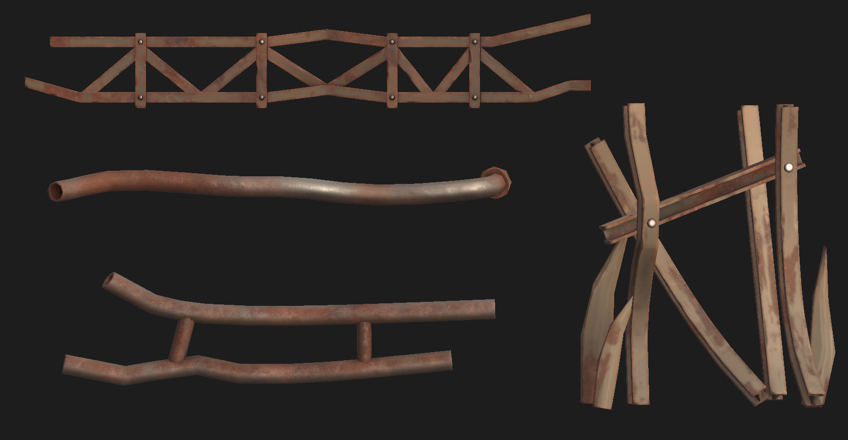 Stylized rusty metal structures asset pack Low-poly 3D model